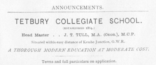 The Tetbury Advertiser, January 1900, said that it offered 'modern education at moderate cost' in 'one of the healthiest positions in the Cotswolds.